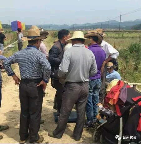 在等待收割的同時,活動的主辦方浙江省臺州農(nóng)資與樂平中天農(nóng)業(yè)的工作人員開始登記觀眾所報的產(chǎn)量競猜數(shù)據(jù),因前幾日為了催枯打了立收谷,水份含量比一般收割田塊要低,大家是看了又看,想了又想,猜330斤到400斤的都有,看樣子群眾的心中還是有桿秤,此田300斤往上走是鐵定的了!